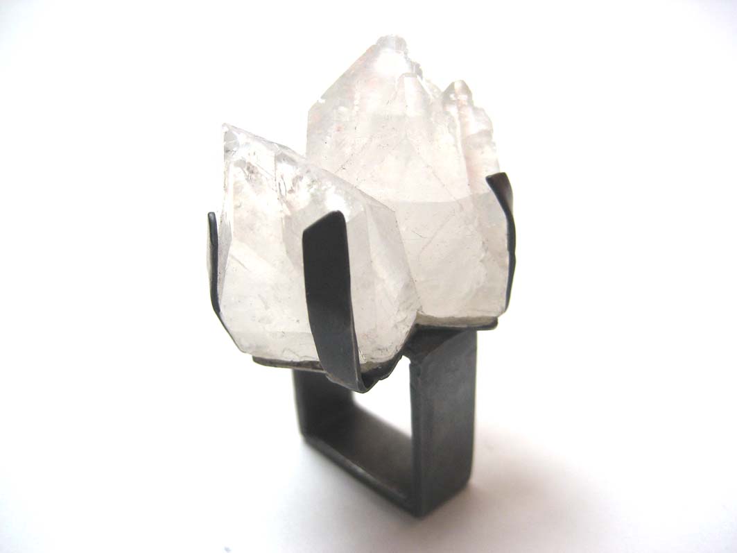 "Facinated with the idea that appearances are deceptive, Tessa Blazey has explored ideas of camouflage and illusion through three degrees and countless design projects. She did a bachelor in sculpture and one in interior design from RMIT, and then followed her calling and completed a jewellery diploma at NMIT. Tessa's creations, produced under the name Fiction, encompass all her experience - sculptural rings, pendants and earrings play with light and shadow and define interior spaces within, revealing new aspects of themselves as you ger closer. Her work is bound to adorn both fictional heroines and science fiction goddesses."